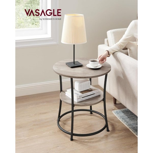 VASAGLE Side Table, Round End Table with 2 Storage Shelves