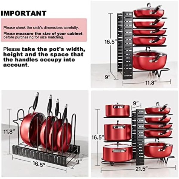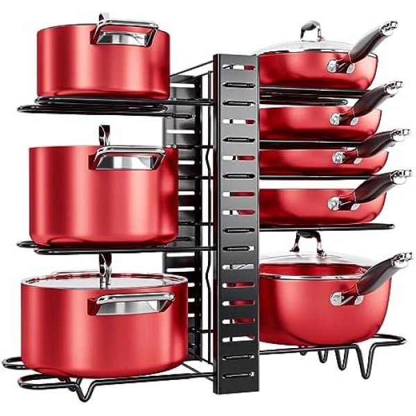 MUDEELA Pots and Pans Organizer for Cabinet 8-Tier Pan Organizer Rack