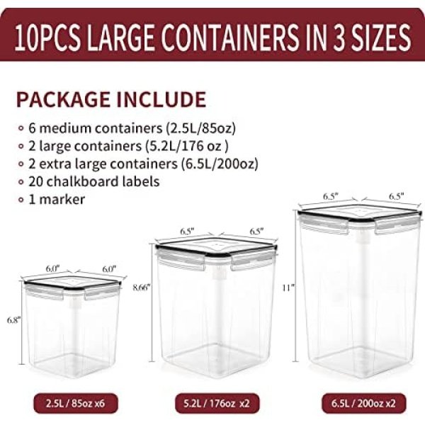 PRAKI Large Airtight Food Storage Containers, 10PCS BPA Free Plastic Cereal