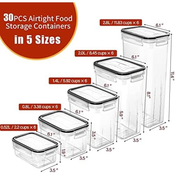 PRAKI 30 Pack Airtight Food Storage Containers for Kitchen Pantry Organizers
