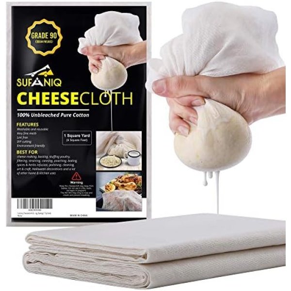 Sufaniq Cheesecloth Grade 90-Unbleached 100% Cotton Fabric Reusable Ultra Fine