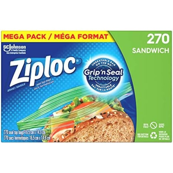 Ziploc Snack and Sandwich Bags for On-the-Go Freshness, Grip ‘n Seal Technology