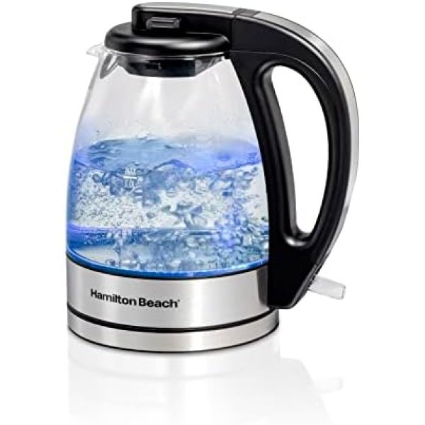 Hamilton Beach Glass Electric Tea Kettle, Water Boiler & Heater, 1 L, Cordless