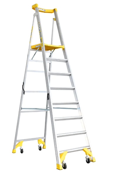 The Bailey P170 range of platform stepladders offers the largest in class platform measuring 610 X 457mm. With a 170kg load rate and industrial duty rating it is extremely durable and job site ready. Available in both aluminium and fibreglass, with a factory fitted carry handle and castor system it will improve safety and efficiency on your work site. Safety gates are available as an accessory.