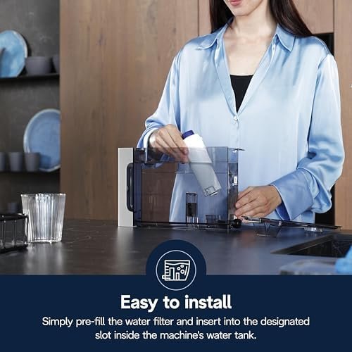 The naturally occuring minerals and chemicals found in tap water can build-up inside your coffee machine, causing premature breakdown and a bad tasting coffee. The De’Longhi BPA-free Water Filter significantly reduces the likelihood of premature breakdown from scale build-up which in turn improves the machine’s performance, keeping a consistent brew temperature and flavor. It’s internal active carbon and ion-exchange technology traps unwanted chemicals and aromas, optimizing water to give you a better in-cup experience. Using De’Longhi’s BPA-free Water Filter Replacement will also decrease the need of descaling by 20%