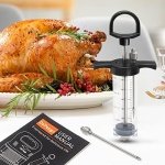 2pcs Meat Needles but Enough for All Meats — It comes with 2pcs sturdy stainless steel meat needles (length: 3inch/7.6cm); Fit both liquid and fine-ground chunky marinades without clogging; Super sharp to pierce all thick meat for marinating (4 times faster than traditional manner). Go well on almost all meat and poultry, like steak, beef brisket, turkey, pork, chicken breast, lamb, fish…