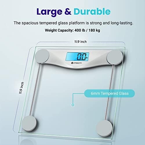 Reliable readings in an instant—step on the auto-calibrated platform and receive accurate measurements in pounds or kilograms, weigh up to 400 lb. (180 kg) precision built with 4 high-precision sensors, delivering results with a 0. 2 lb. / 3 oz. Accuracy resolution cleanly displayed on an easy-to-read lcd screen tempered strength: Built with a thick and durable 6 mm clear tempered glass platform resilient enough to provide years of fitness tracking