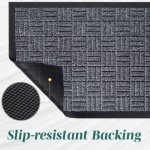 HOMWE entry door mats are woven with a thick, high-quality polypropylene fabric that easily absorbs dirt, mud and even water to help keep shoes from tracking them into the living room, kitchen, or other carpeted areas.