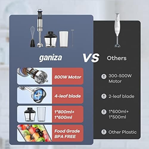Ganiza Immersion Blender, Electric Hand Blender 800W with 15 Speed
