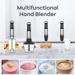 ❤️【MULTIPLE ACCESSORIES YOU NEED】5-in-1 stick blender for versatile capabilities. Includes immersion hand blender, 800ml Mixing Beaker, 600ml Chopper, Whisk Attachment, and Milk Frother. The snap-on/off detachable attachments are designed to make it easier to operate when multi-tasking in the kitchen.