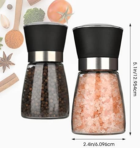 🥙【Easy To Refill】Salt and Pepper Mills are 5.1” tall and each salt shaker and pepper shaker will hold up to 3/4 cup or 6 oz of the salt, pepper or the spice of your choice. Just unscrew the grinder from the bottle to refill.Manially cranked = No Batteries = Environmentally Friendly salt and pepper grinder sets. Effortlessly twist with your hand grind fresh ingredients!