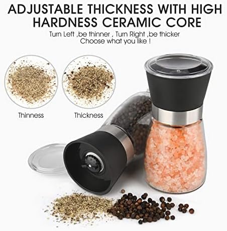 🥙【Freshness of Your Spices Maintainess】Salt and pepper grinder set was designed to maintain the flavor of your spices for a very long time and keep them out from dust and moisture between uses or in storage. The grinders do not absorb flavors nor do they corrode.You can use it to grind sea salt, pepper black pepper, red, white or garlic pepper or other spice.