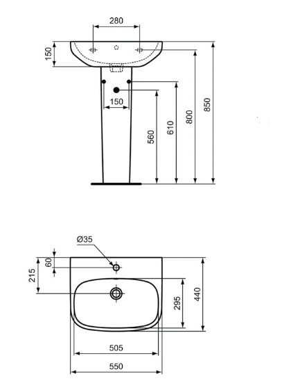 Ideal Standard i.life Basin and Pedestal 55cm 1 Tap Hole