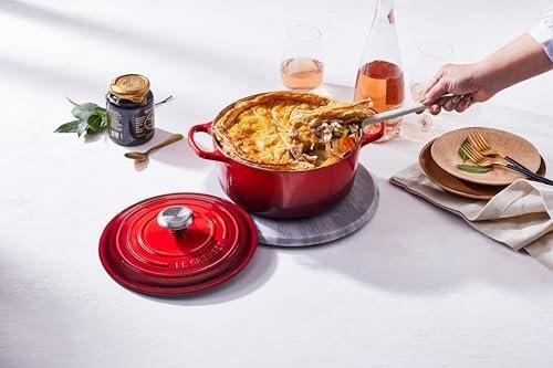 The iconic Le Creuset Dutch oven is indispensable in the kitchens of home cooks and professional chefs alike. Expertly crafted from enameled cast iron, the everyday versatility of the Dutch oven makes it ideal for everything from slow-cooking and braising to roasting, baking, frying and more. Individually crafted by French artisans from the finest quality materials since 1925, the Le Creuset Dutch oven is beloved for its perfected design and exceptional heat retention that locks in moisture and flavor to produce superior results from stove to oven to table. Designed for generations of durability, the easy-to-clean vibrant porcelain enamel requires no seasoning, minimizes sticking and is dishwasher-safe.