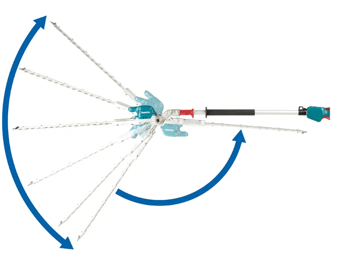 The DUN501W is powered by Makita 18V LXT technology and designed to provide maximum reach, measuring over 2m in length. Featuring a 500 mm blade length with double reciprocating flat blades, the DUN501W provides an efficient cut whilst the user can rotate between the 3-speed settings at the touch of a button. The adjustable head can be locked into 6 different positions all by using the convenient lever. Weighing only 4.2kg with a battery (not included) the DUN501W will provide maximum reach with minimal fatigue for the tasks of all sizes.