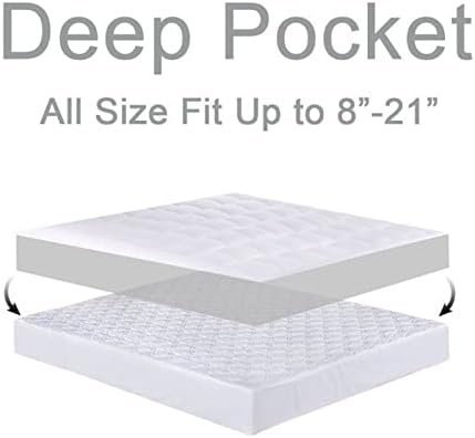 1.Extra Thick and Double Border Technology:Innovative”Double Border Pillow Top Construction” technology not only prevents filling from moving or leak out, also enables this mattress topper overstuffed with 60% more filling, which is far beyond than average on the market. Ultra Soft and comfy, reviving your too firm mattress and enjoying the luxurious comfort at home.