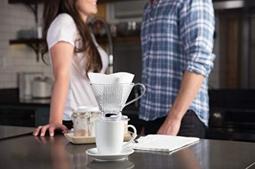 Since 908, Melitta has stood for quality, innovation, and great taste. Using the Pour-Over method to prepare your coffee leads to a richer, smoother, cup of coffee. Within a few tries, you will find your perfect coffee by experimenting with the coffee and water amount. The Pour-Over method is also more as you are preparing only what you need, and the coffee grinds and filter paper are both naturally compostable. Did we forget to mention you get cafe quality at a fraction of the price too? Our Signature Series Matte Red Ceramic Pour-Over brews handcrafted coffee in three simple steps: Place Pour-Over cone on top of your mug, insert Melitta cone. Scoop in your favorite fresh ground coffee to taste coffee filter. Pour hot water (just off the boil) into the cone, fully saturating all grounds.The Matte Red Ceramic Signature Series Pour-Over Coffeemaker is an elegant interpretation of the original Pour-Over Coffeemaker that our founder, Melitta Bentz, invented over 00 years ago. A medium-size drip opening provides a consistent brew and eliminates risk of bitterness while a ring underneath the drip opening directs coffee flow into mug and prevents runoff. And lastly, our full-height ridges within the cone provide the optimal flavor extraction. Melitta: Join the pursuit for better coffee.
