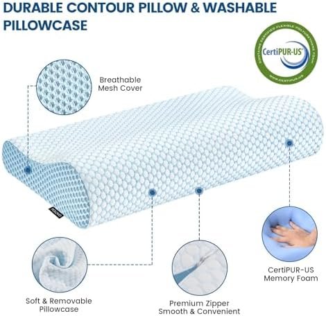 Washable Pillowcase & Breathable Pillow: This pillow for sleeping comes with soft pillowcase, which is made of soft comfortable fabric and mesh sides, removable and machine-washed. Besides, the contour neck pillow features excellent moisture absorption performance and breathability, remaining consistent firmness all the year