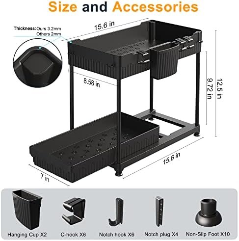 【Durable in Use】: The undersink organizers and storage is made of high-quality ABS material(thickness:3.5mm) and features a thickened support tube, The under sink organizer kitchen is made of high load-bearing and rust-resistant material,solid and stable,capable of supporting weights of up to 50 pounds.