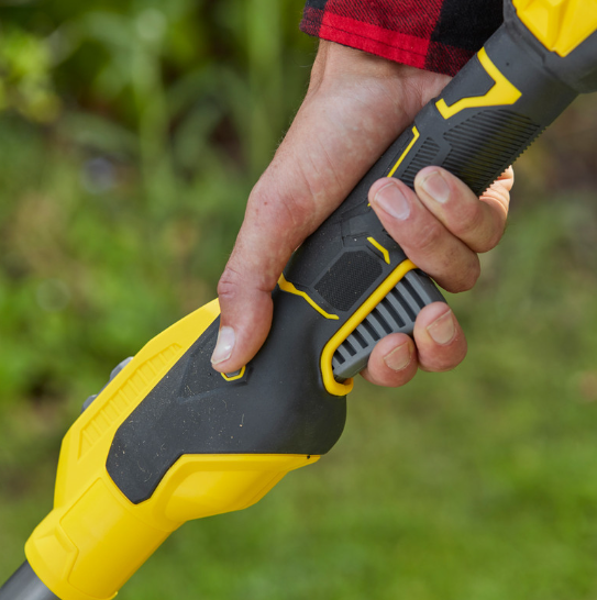 The 18V Stanley FatMax V20 33cm brushless cordless trimmer with improved battery technology, no memory effect and minimal self-discharge, features the new V20 lithium-ion battery pack that is ready to go to work whenever you are and wherever the job takes you. The string trimmer features brushless motor technology for improved power efficiency and longer runtime, from a smaller, more compact motor with reduced maintenance and extended working life. The unit features a large 33cm cutting width for fast and effective trimming, gear-drive transmission for increased torque and more cutting power and a bump-feed QUICKWIND™ spool system providing a strong 2mm dual line to tackle thicker grass and weeds. Complete with a high/low speed control for variable speed to maximise runtime efficiency, an adjustable auxiliary telescopic handle for comfort and ease of use and an integral battery state of charge indicator for convenient monitoring of battery charge levels. Compatible with the Stanley track wall system – a versatile, adaptable storage system for your garage or workshop. Part of the new 18V Stanley FatMax V20 Cordless System. Power all your V20 tools with a common, new and improved 18V lithium-ion battery to help power through all gardening endeavours with ease.