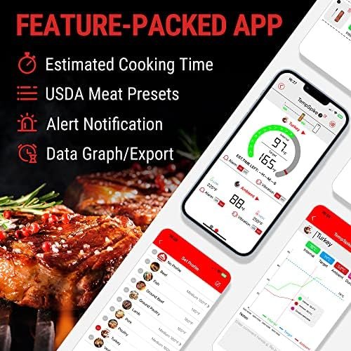 Easy-to-Use, Multifunctional App: Get real-time alerts on the go with the smart thermometer App; Supports custom timer and temperature graphs; USDA-recommended preset temperatures elevate your cooking like a pro every time you fire up your grill with our smoker thermometer