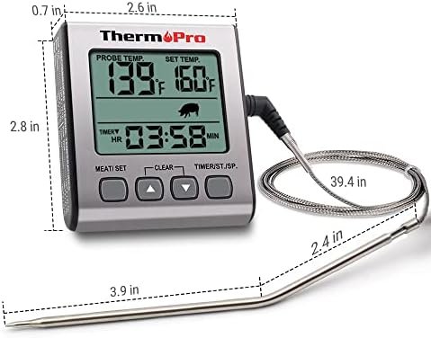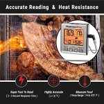 Large LCD display: Keep track of cooking temperatures and the time simultaneously using this kitchen thermometer’s large screen; this BBQ thermometer features a 99-hour and 59-minute countdown timer