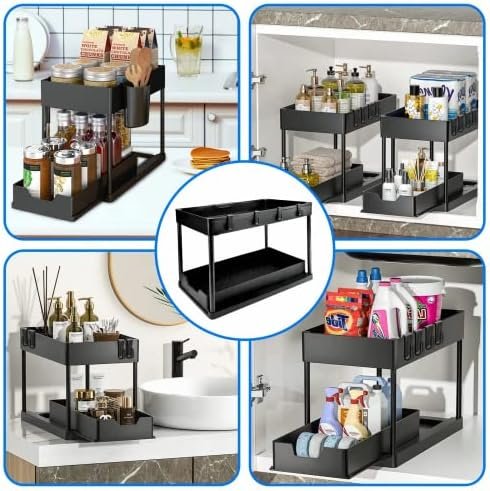 Under Sink Organizer 2 Set – Tomekji Under Sink Storage Plastic Sliding Drawer